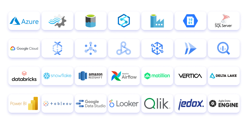 Azure Synapse · Snowflake · BigQuery · Amazon Redshift · Databricks - Data engineering & workflow tools